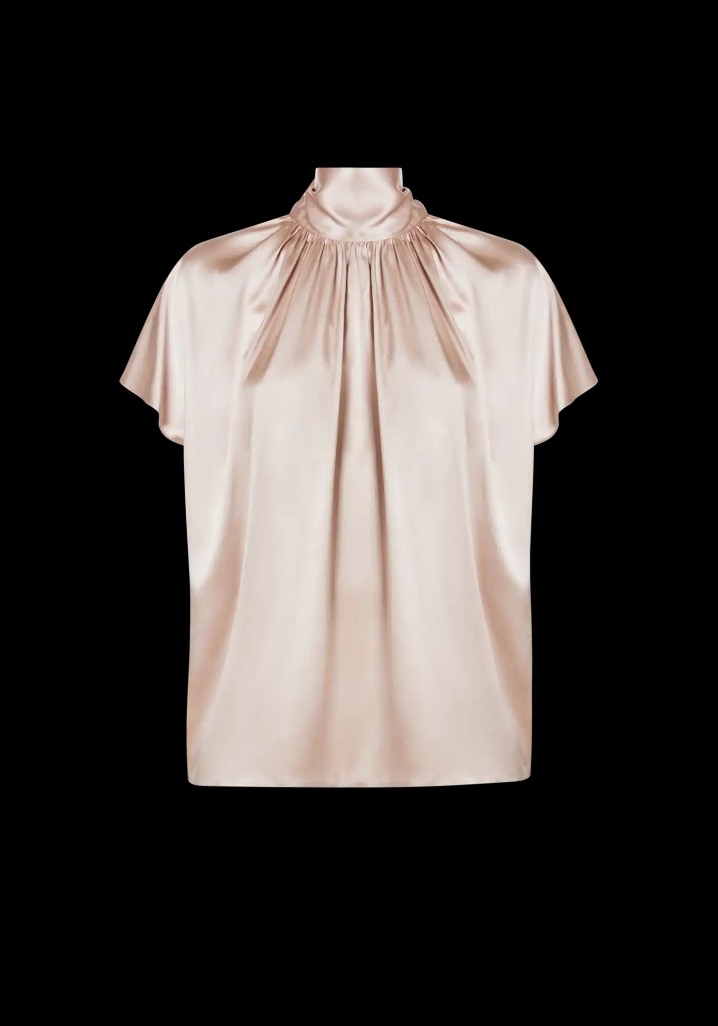 The Alya top in silk features a chic high neckline and a relaxed, flowing fit. Designed for ultimate comfort and style, it drapes beautifully on the body, offering a modern yet timeless look. Perfect for layering or wearing on its own, this versatile piece adds a touch of understated elegance to any outfit, making it an essential piece