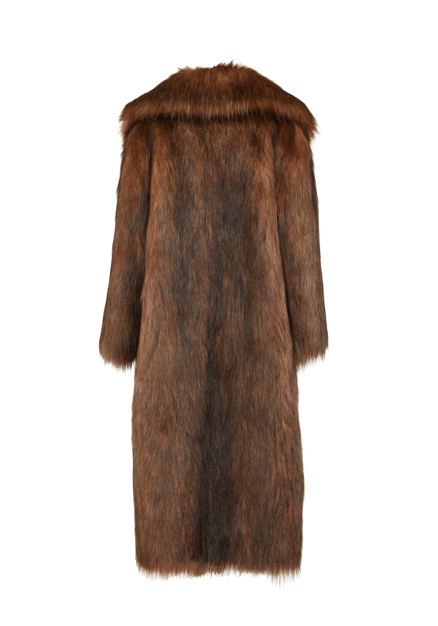 The Aniah faux fur coat offers a luxurious and realistic texture, designed to replicate the richness of real fur. The longline silhouette provides an elegant and elongated look, while the voluminous collar adds to its sophisticated design. The concealed closure ensures a seamless appearance, making this coat a refined choice.