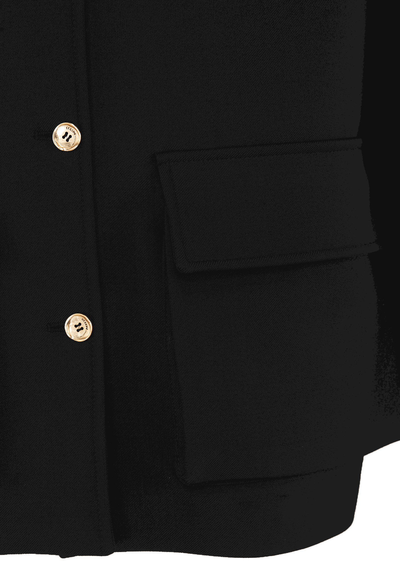 The Awe Jacket is crafted from luxurious wool fabric, offering a refined and structured design. It features a stand-up collar, epaulets, and a button-front closure for a polished look. Equipped with four front flap pockets, this jacket combines functionality with style. Detailed with neatly stitched seams and subtle shoulder pads, it effortlessly blends elegance with practicality, making it a versatile choice for any occasion.