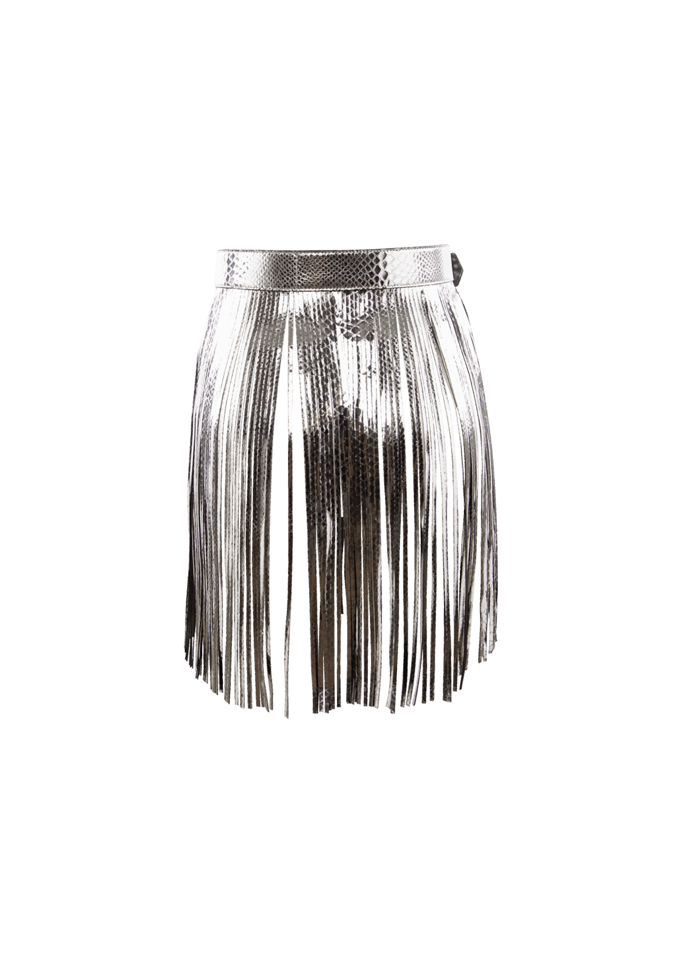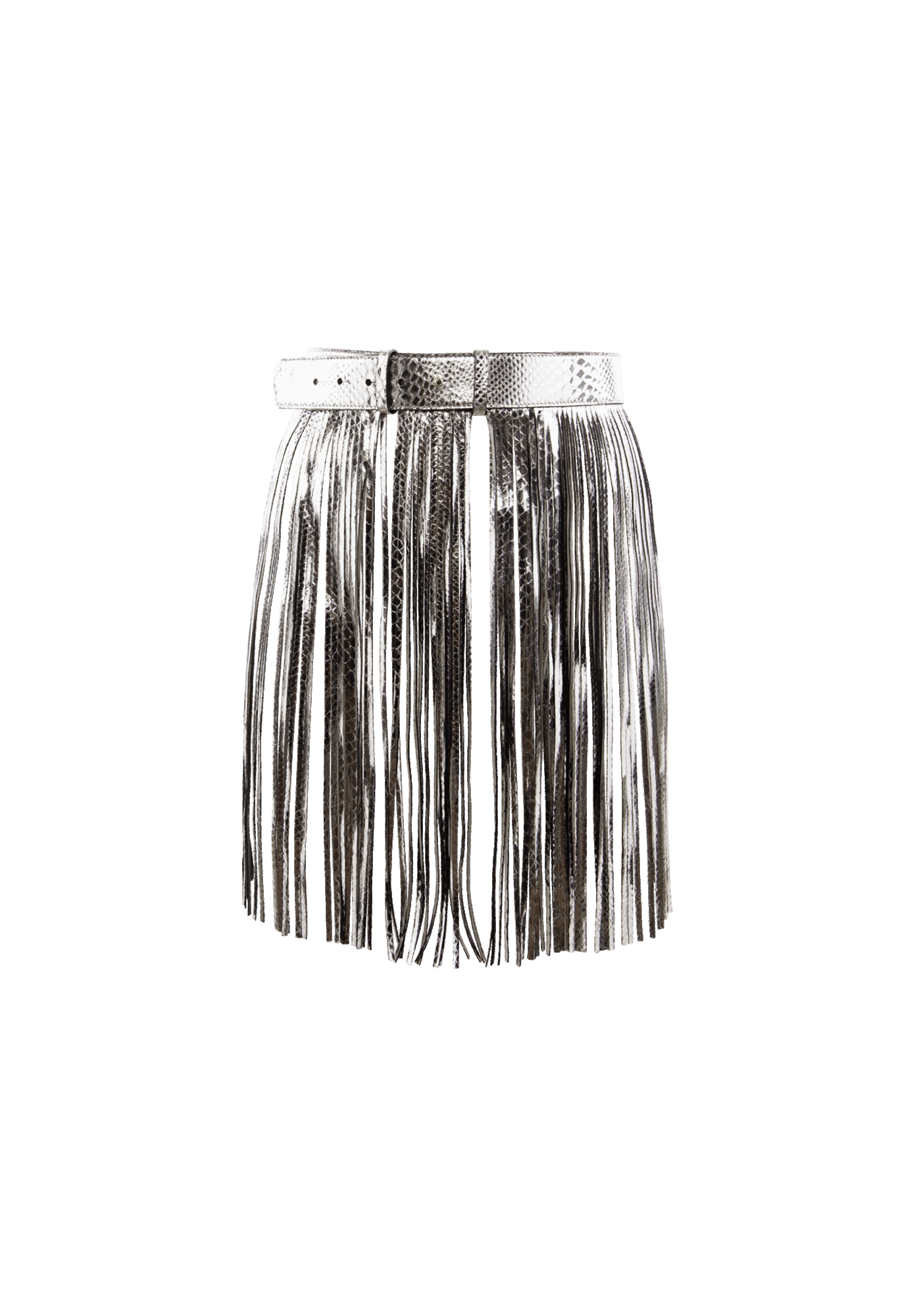 The Cancún belt expresses the essence of Collini through a reptile pattern and delicate fringes surrounding the waist.