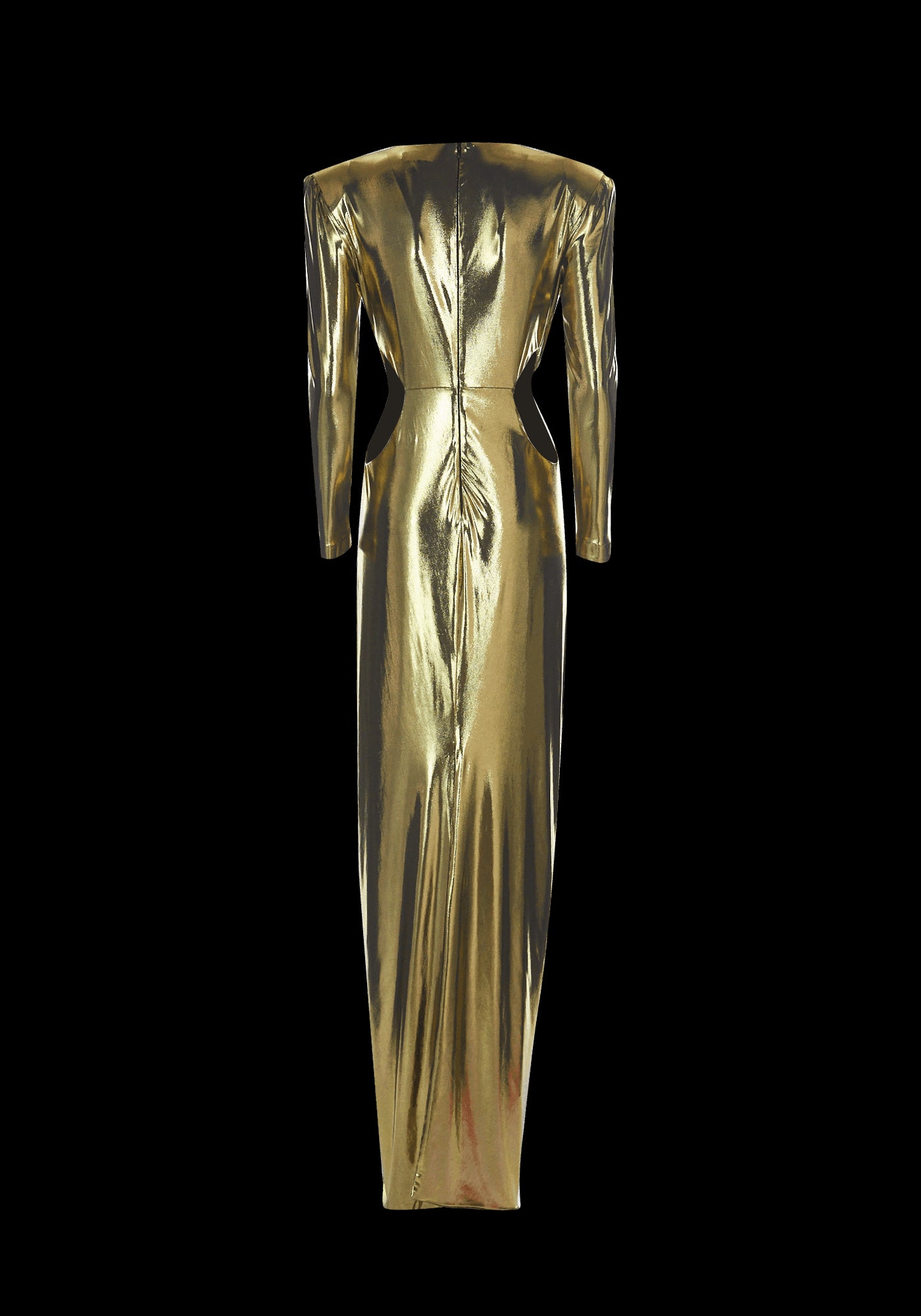 The laminated gold fabric is the big trend for the fashion world to make the look recognizable on every occasion