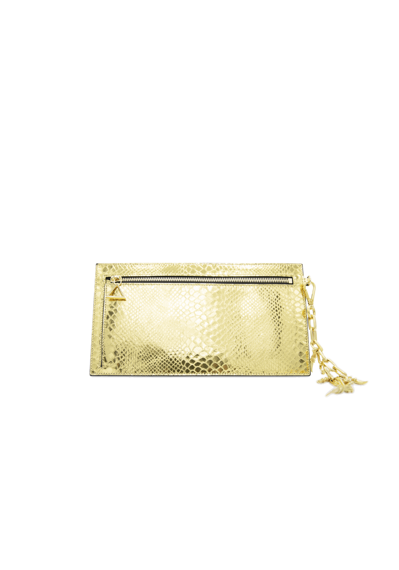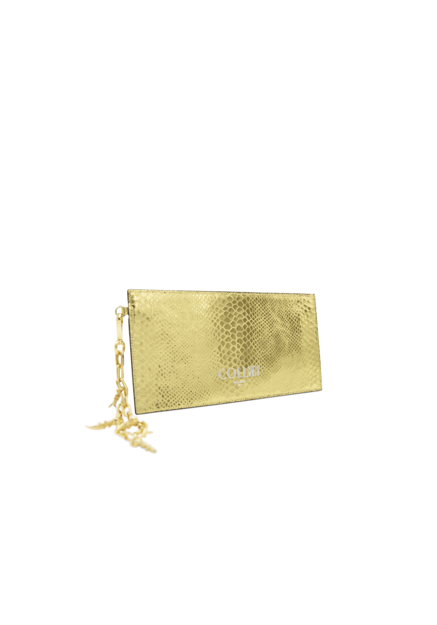 The Eden Roc pouch characterized by a façon ‘Croco’ pattern expresses Collini's extravagance through a full golden look.