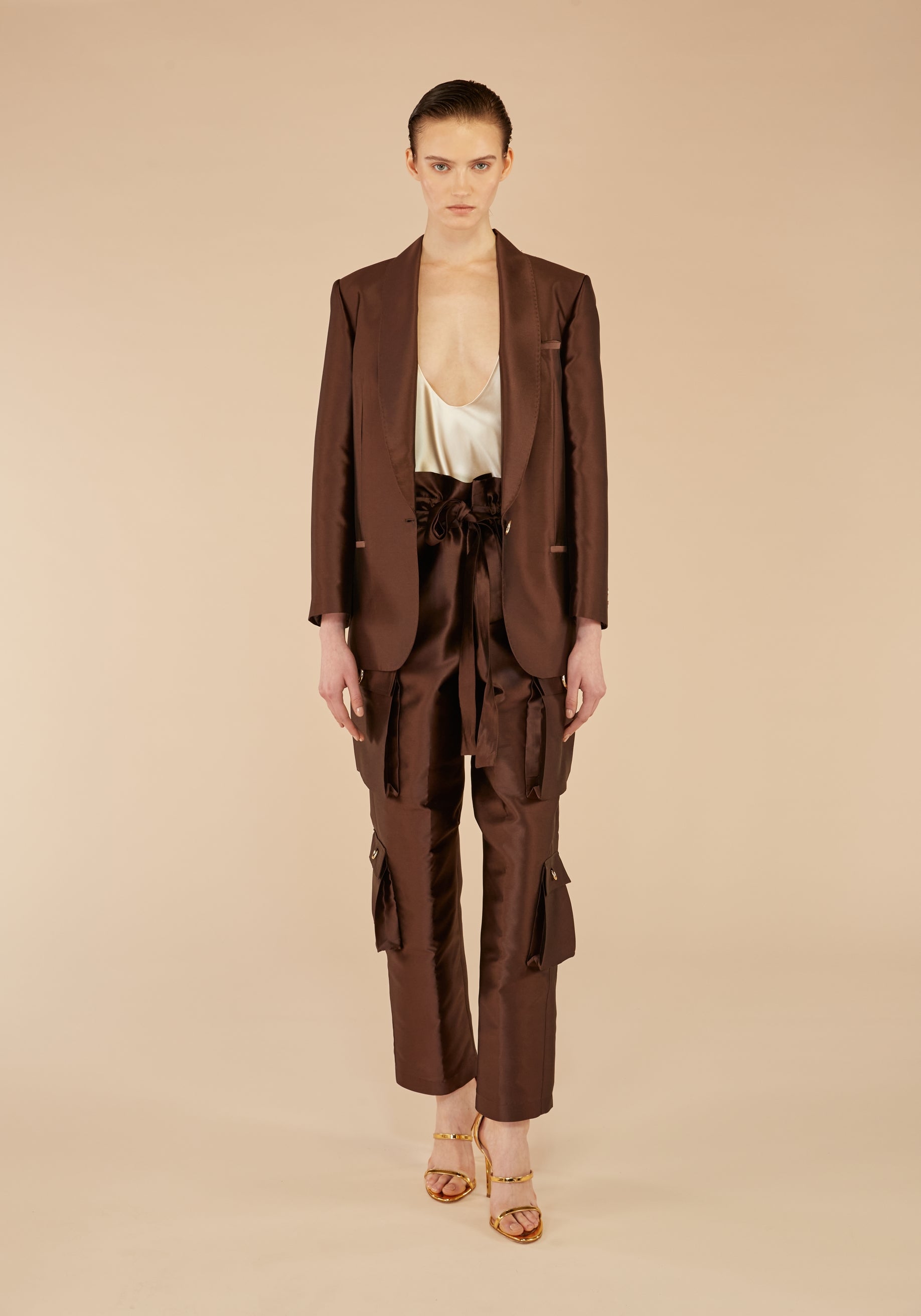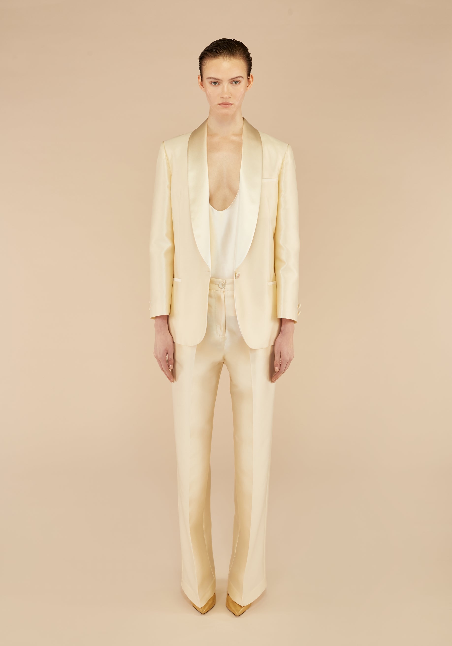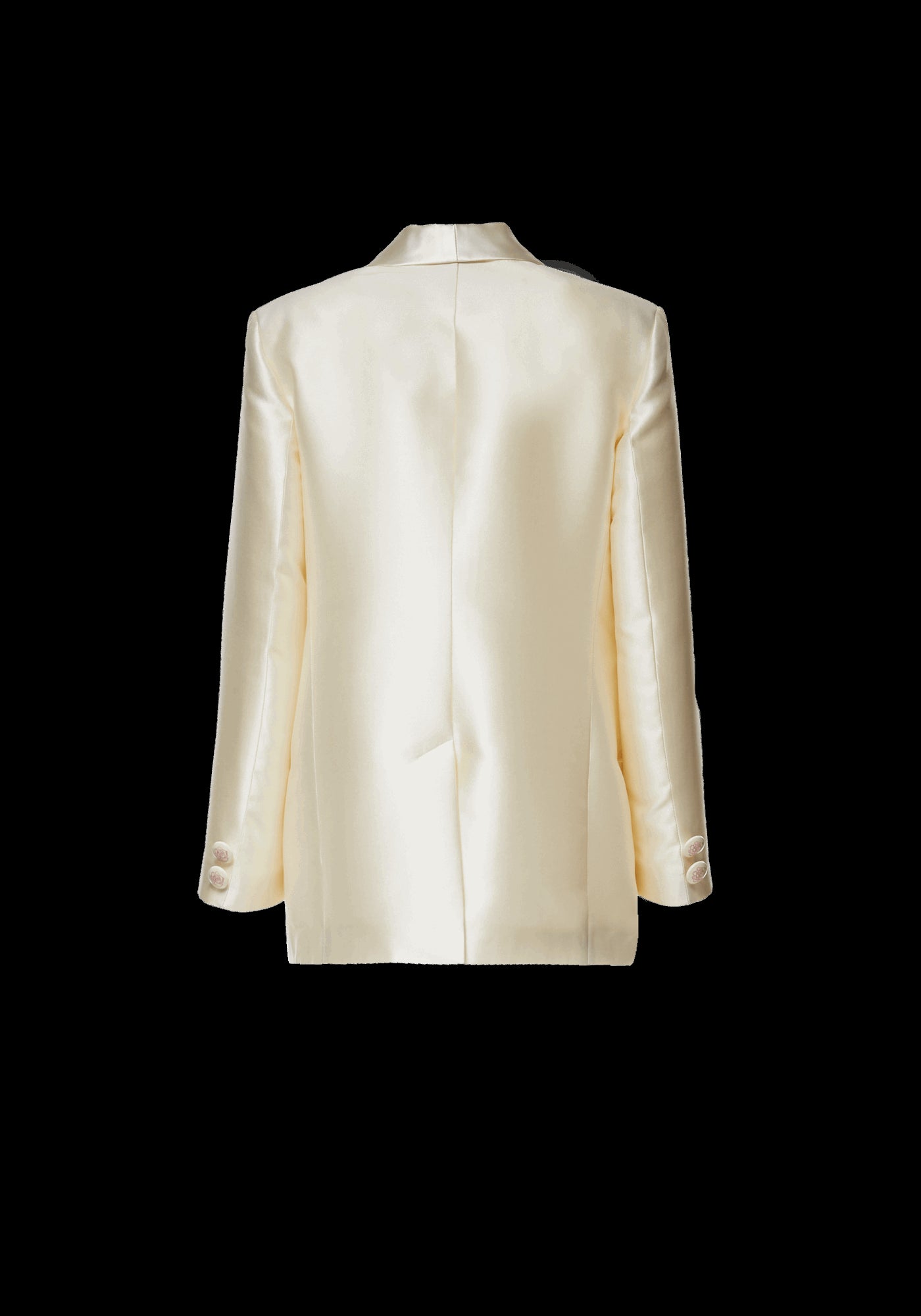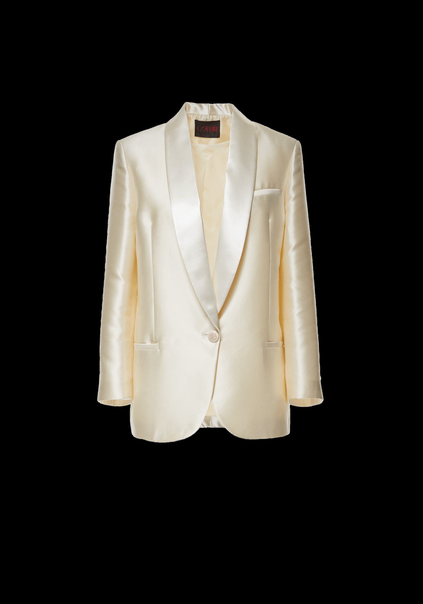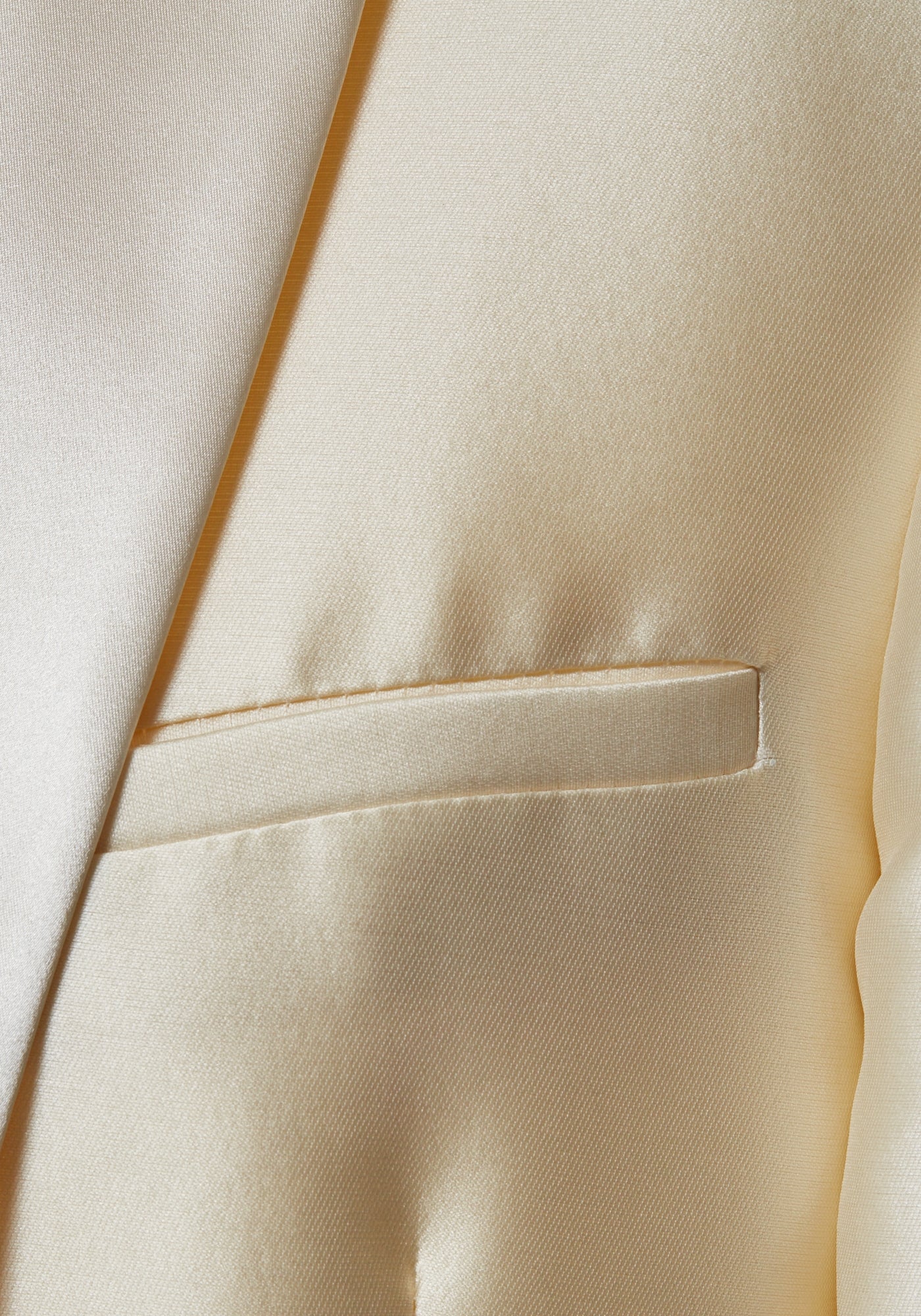 Sophisticated regular-fit jacket crafted from luxurious white mikado fabric. The classic regular fit ensures a timeless silhouette, while the mikado fabric adds a touch of opulence to your ensemble. A versatile piece that seamlessly transitions from day to night.