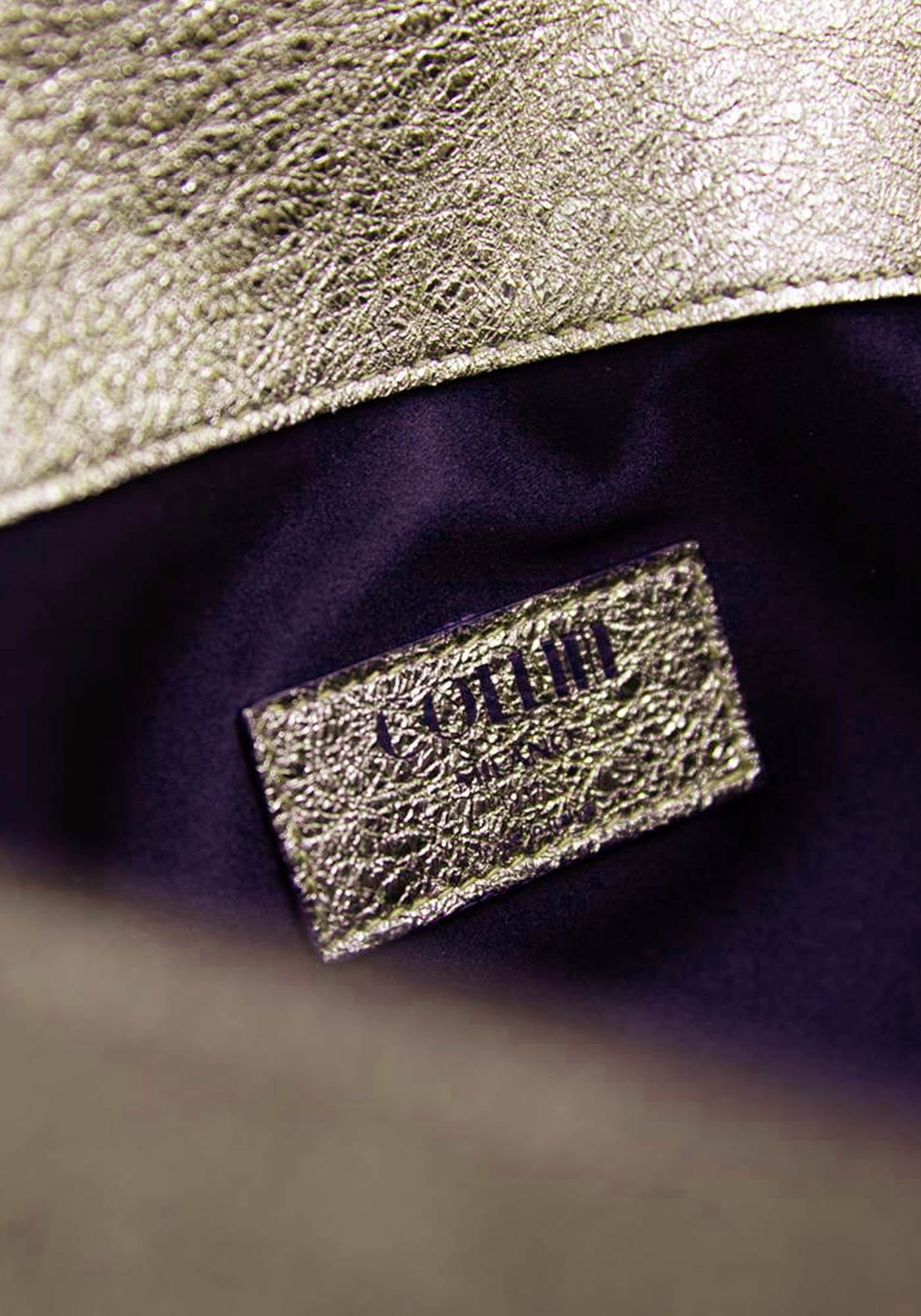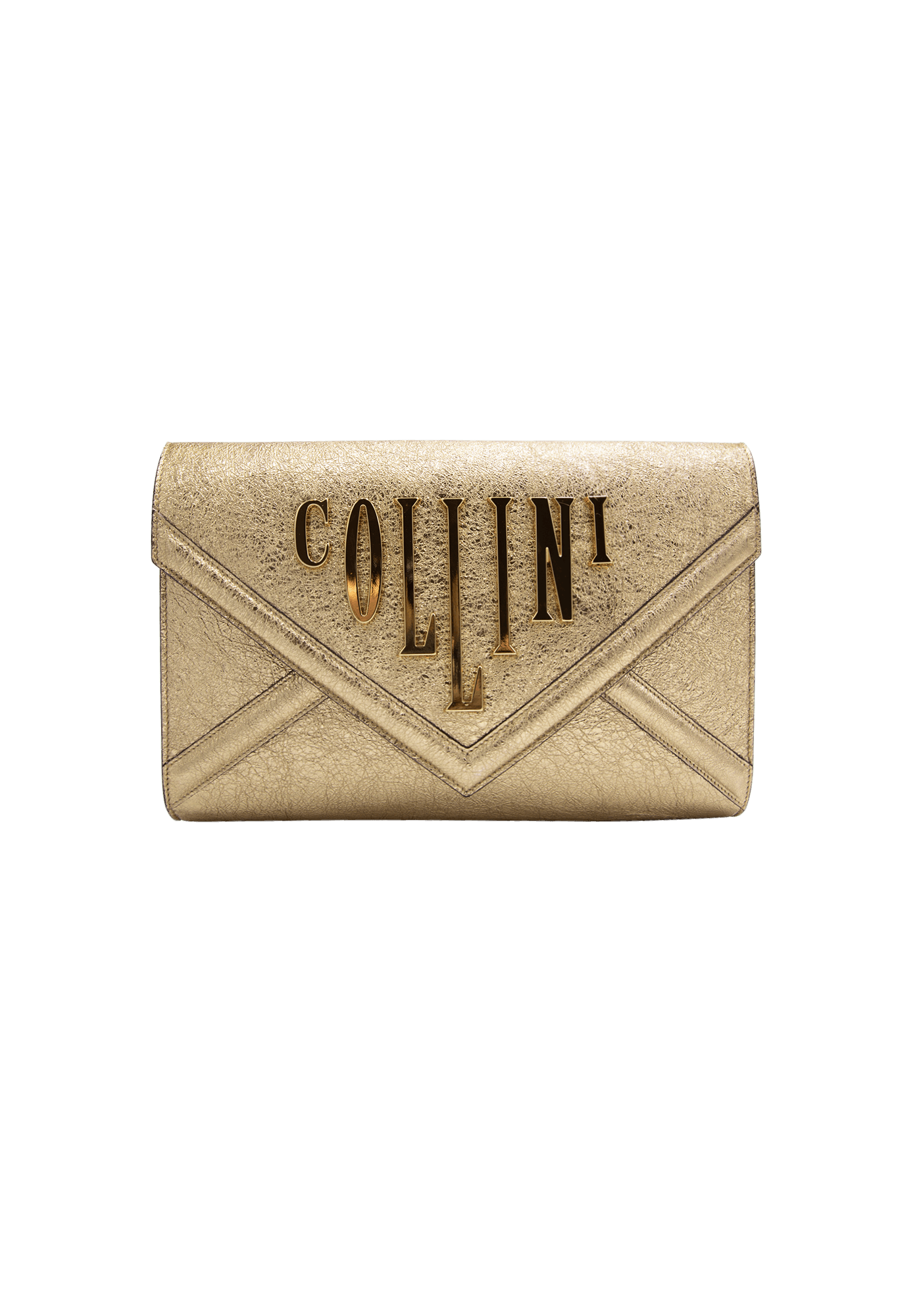 The Havana gold shoulder bag expresses the extravagant Collini personality through a shiny golden leather pattern as well as the golden logo and chain.