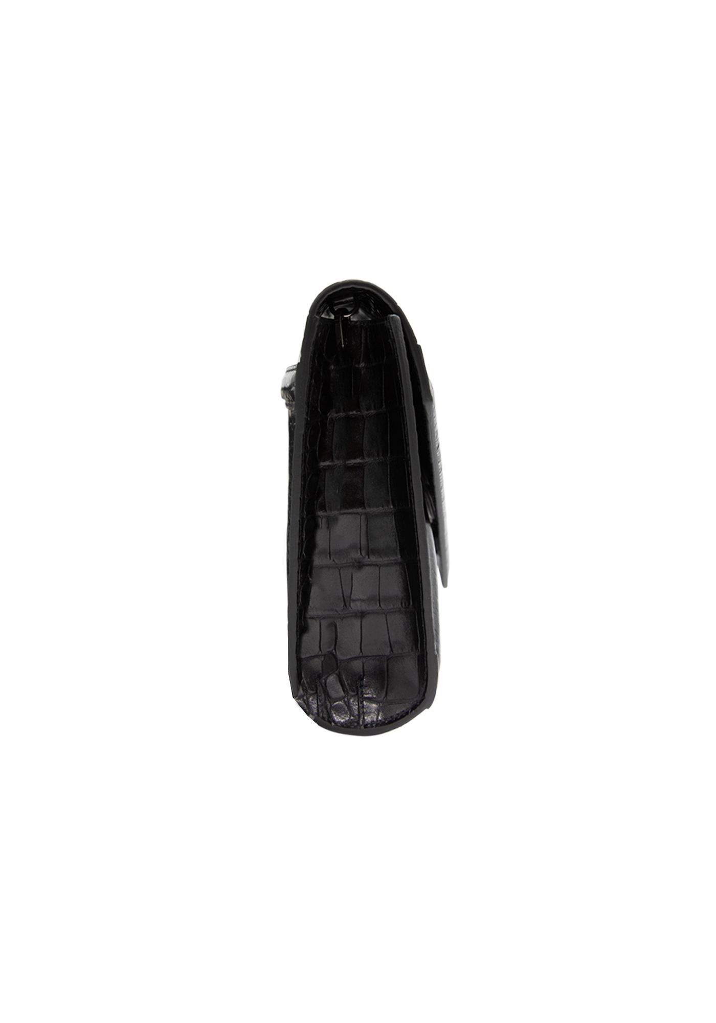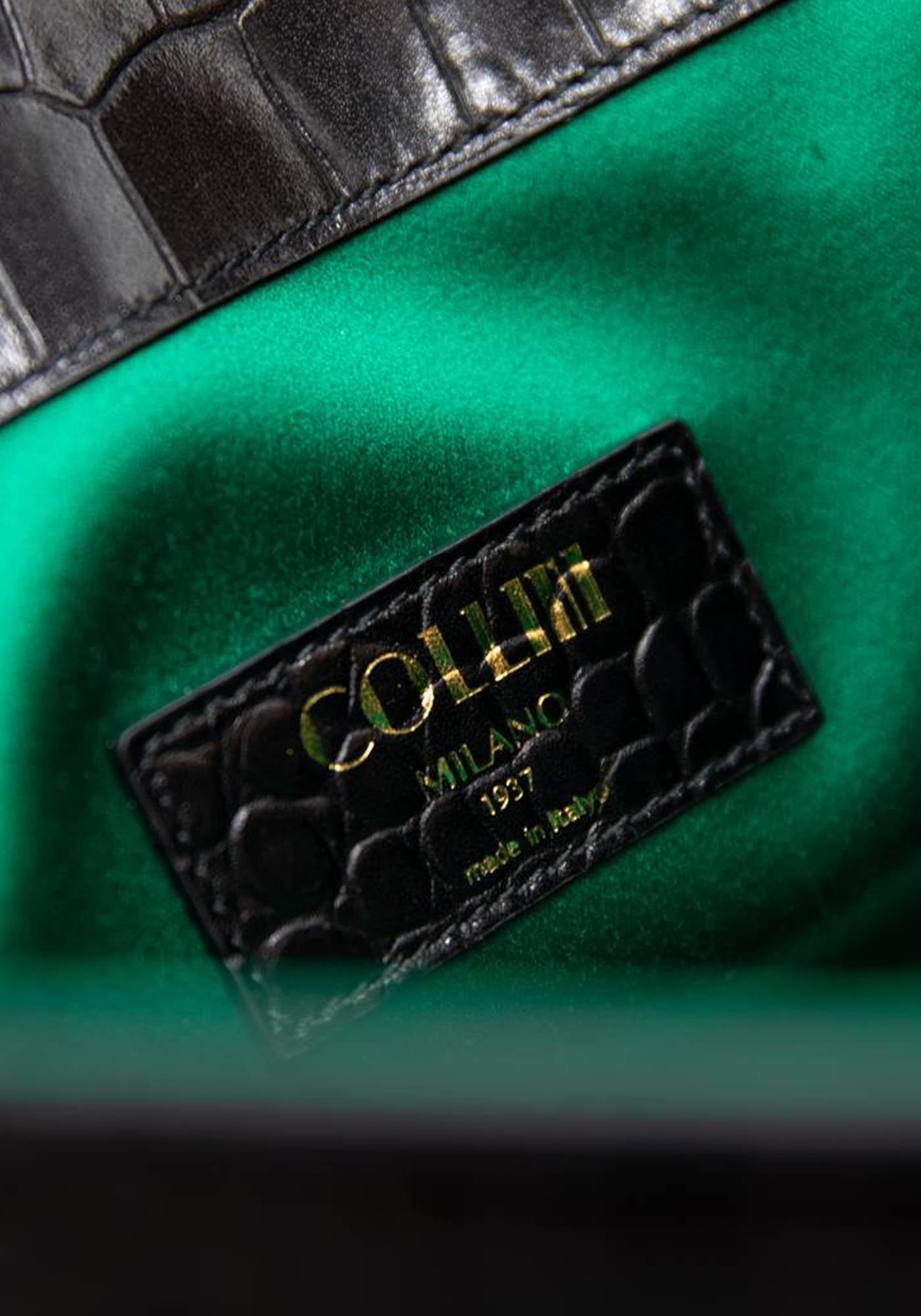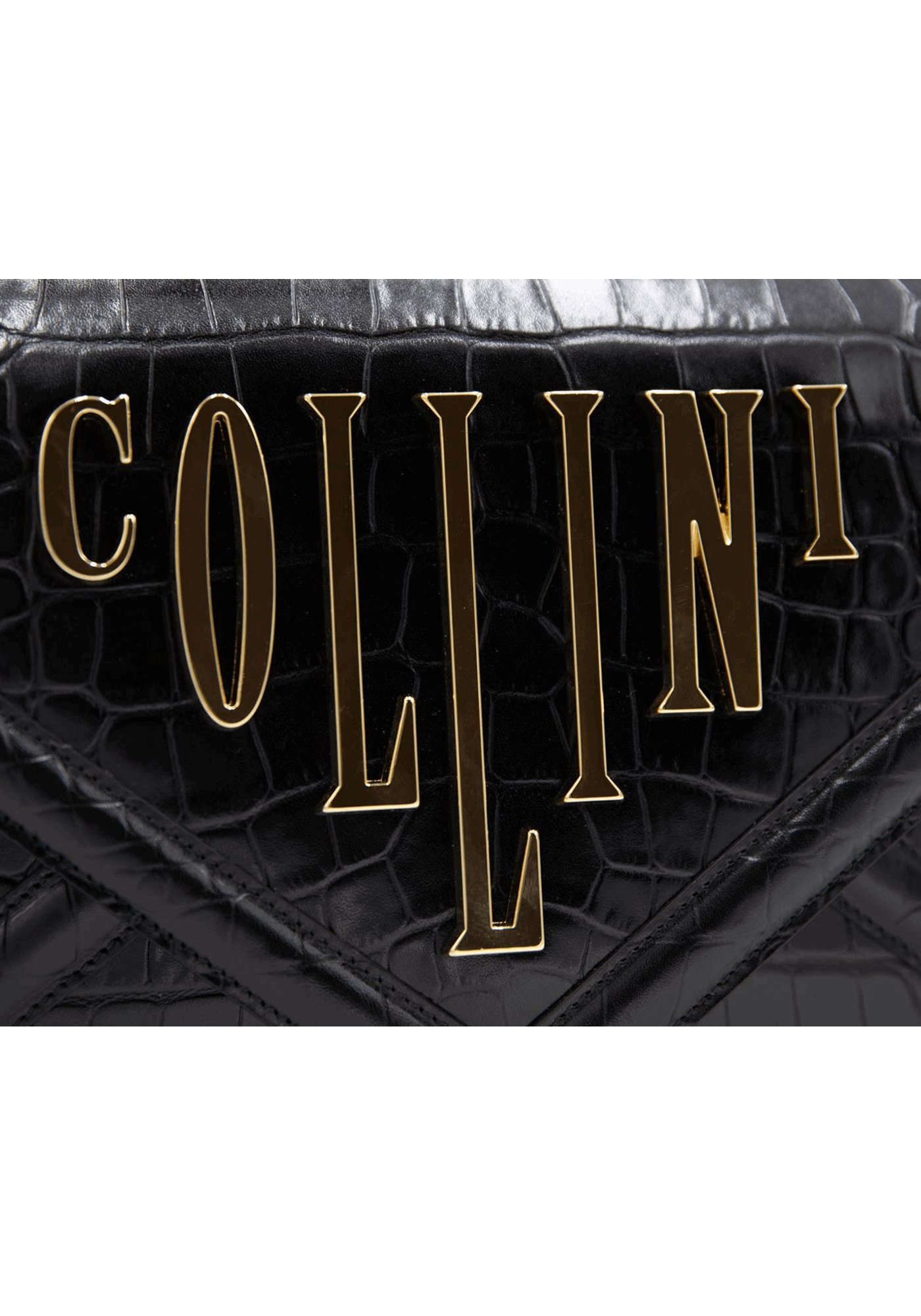 The Havana black shoulder bag expresses the extravagant Collini personality through a façon ‘Croco’ leather pattern as well as the golden logo and chain.