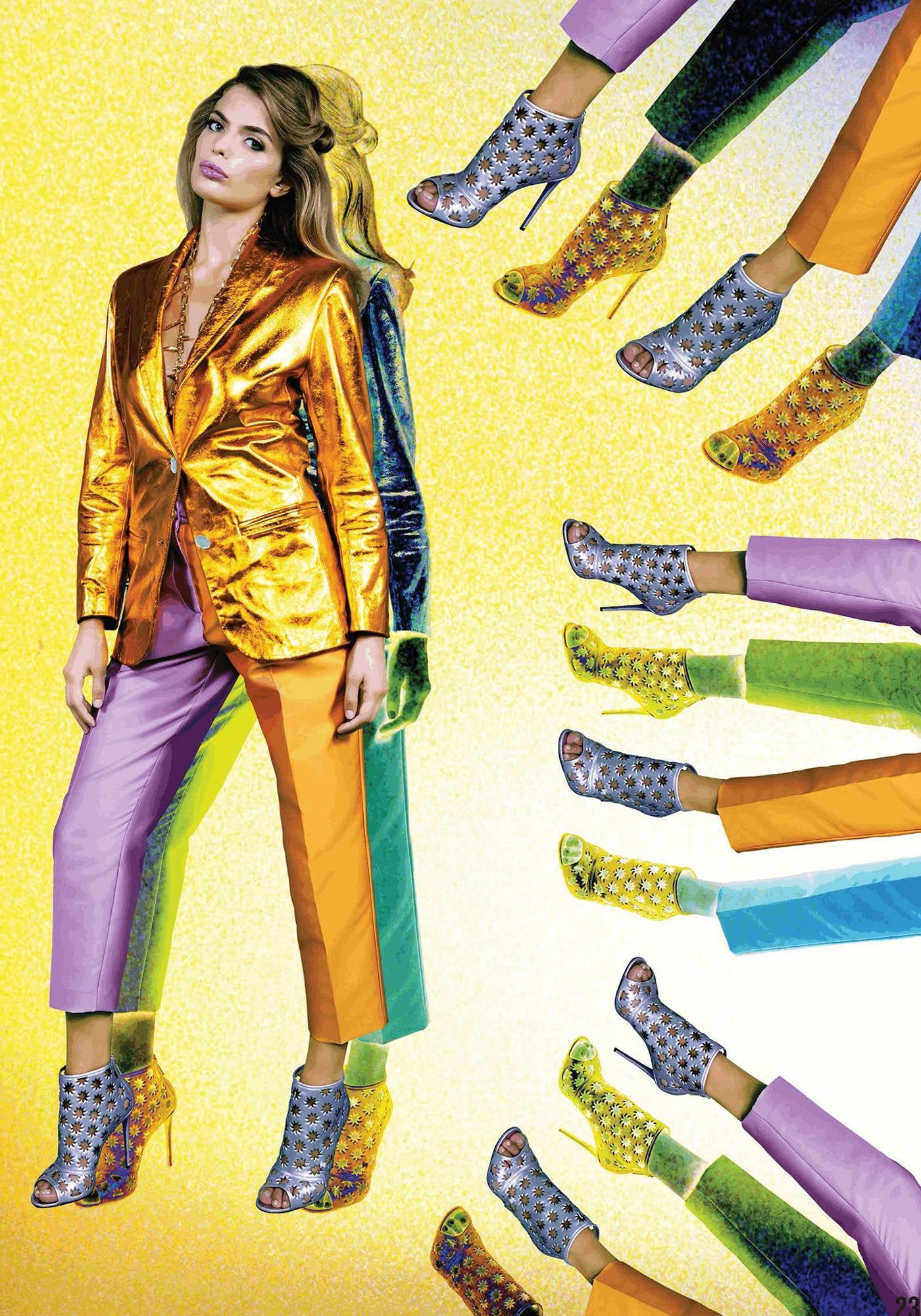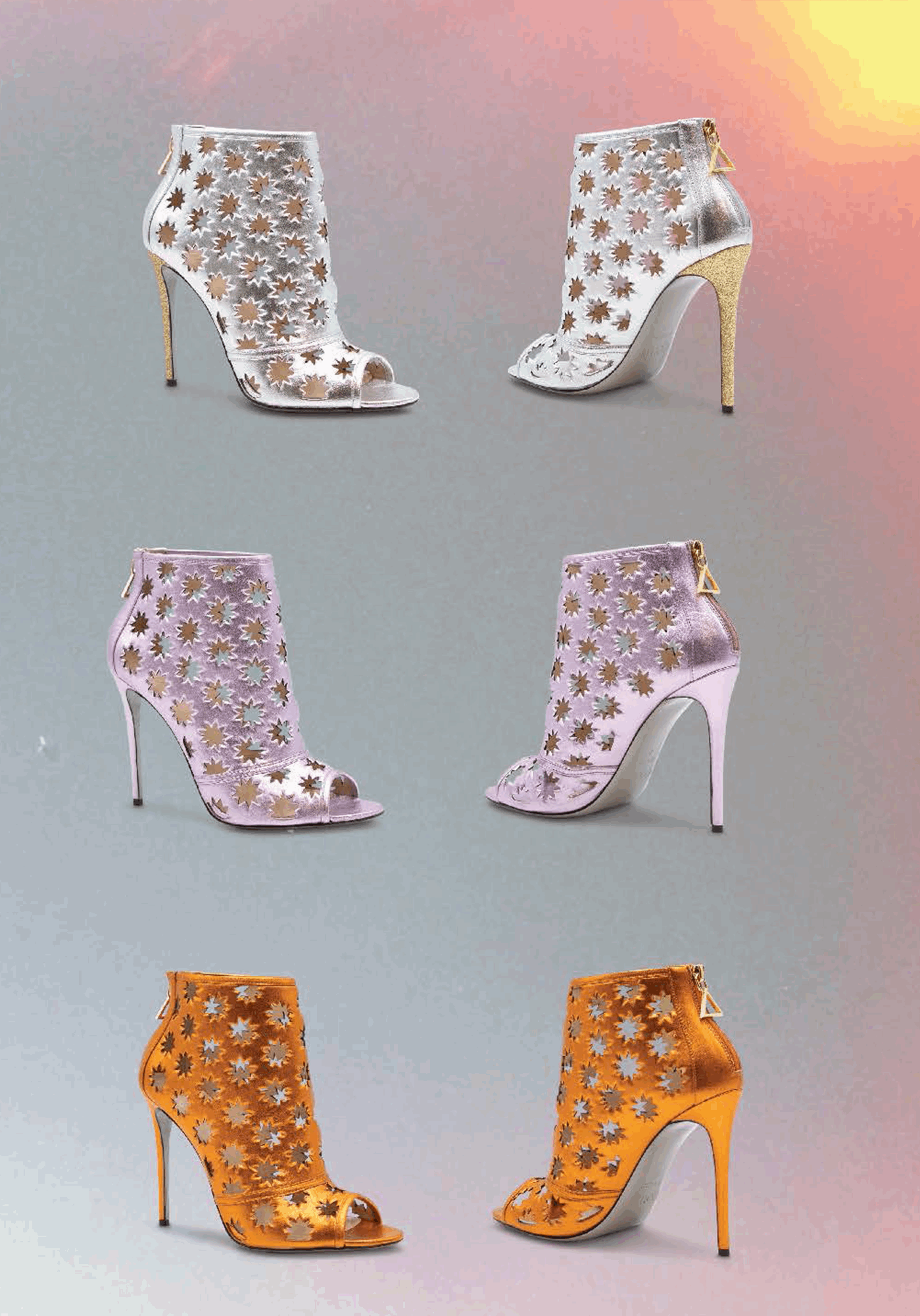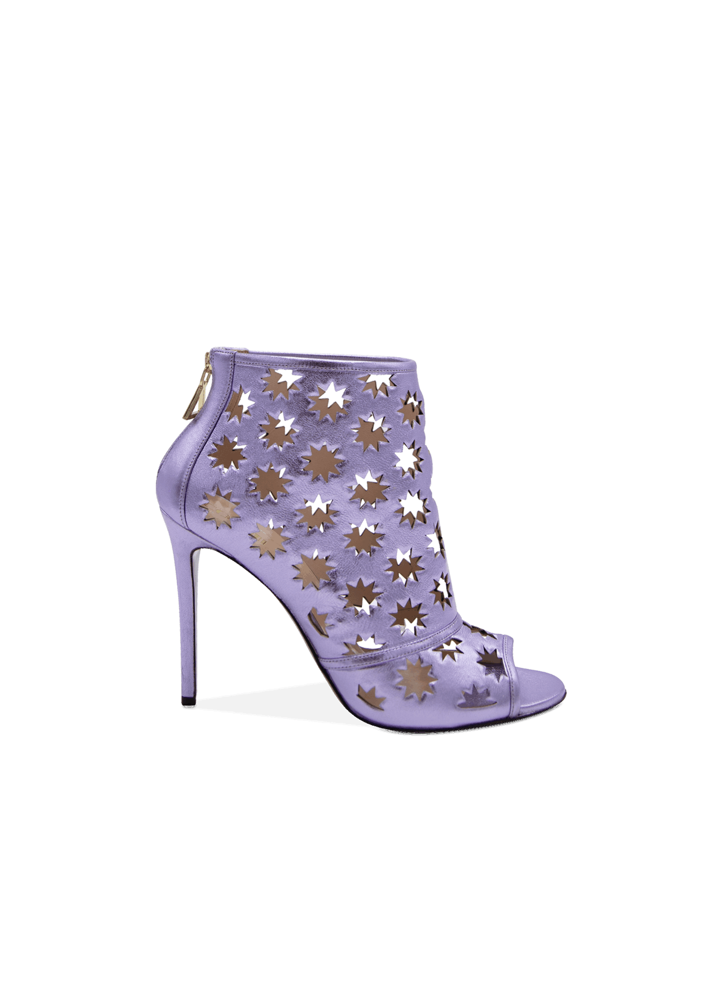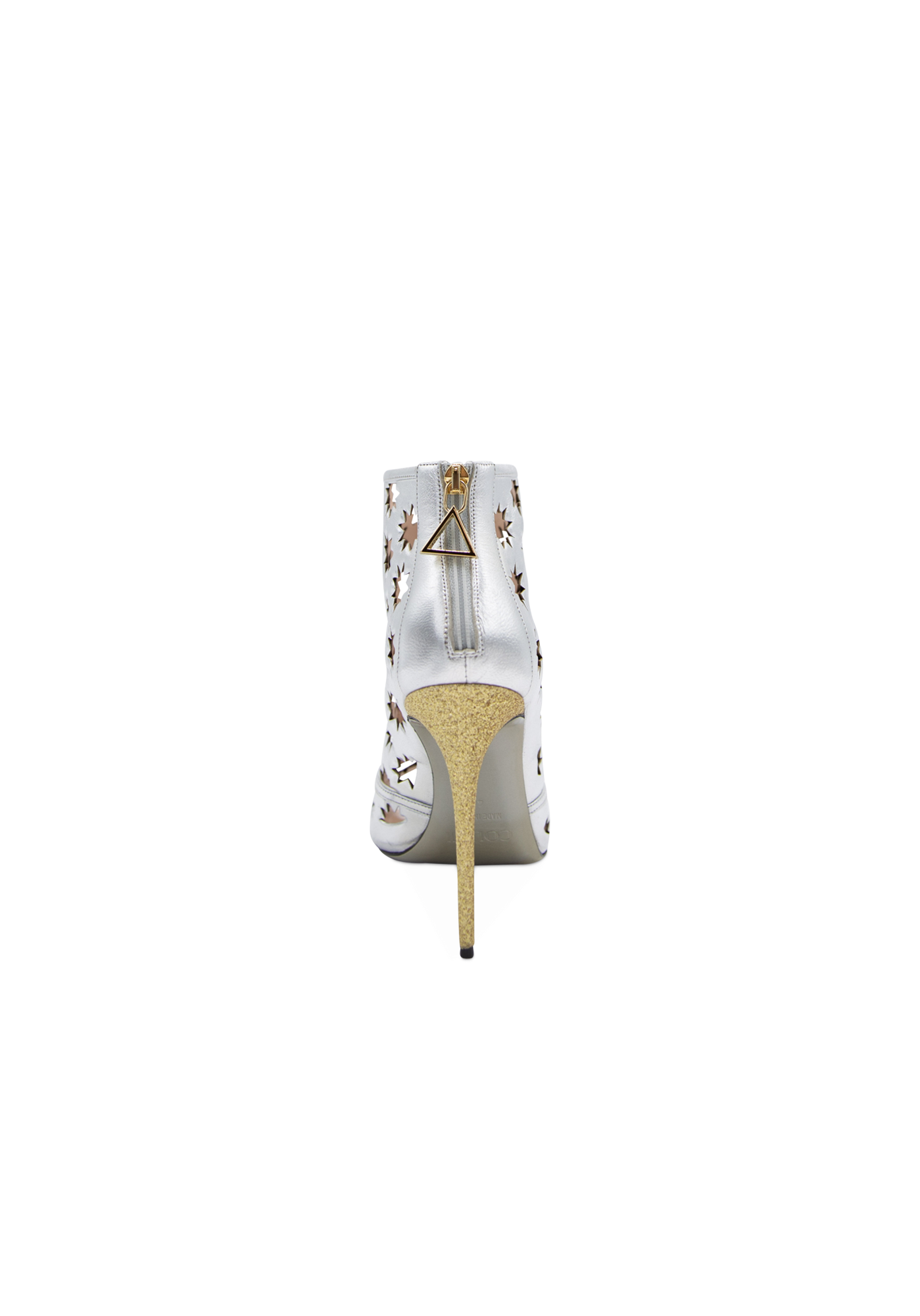 The daring Hollywood high-heeled ankle leather boots shout extravagance and uniqueness. The creative design featuring cut-out iconic Collini stars offers a delicate open shoe with an open toe and a golden back zipper for a sophisticated look.