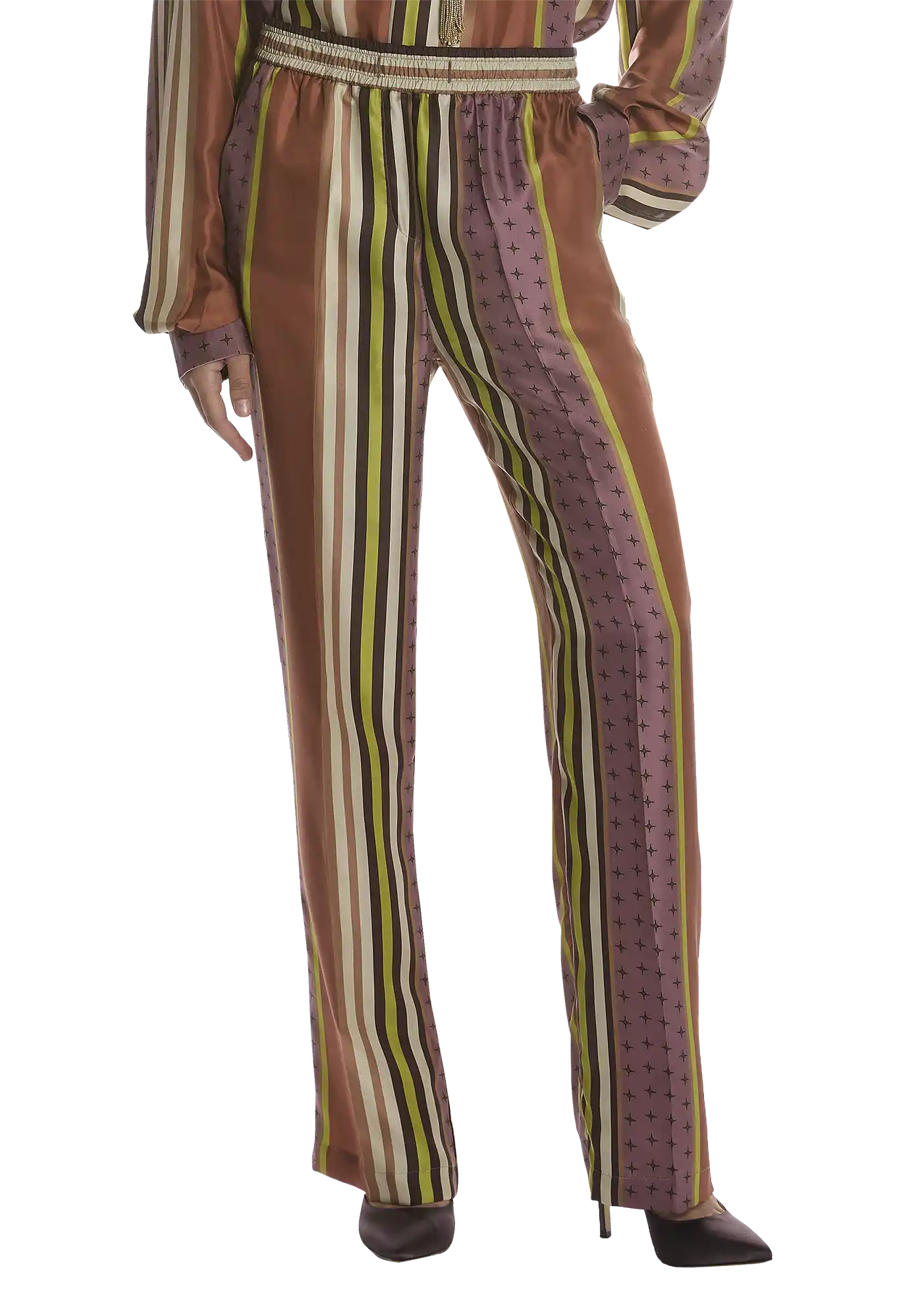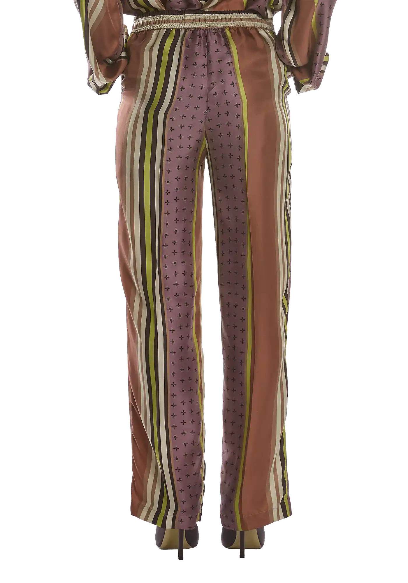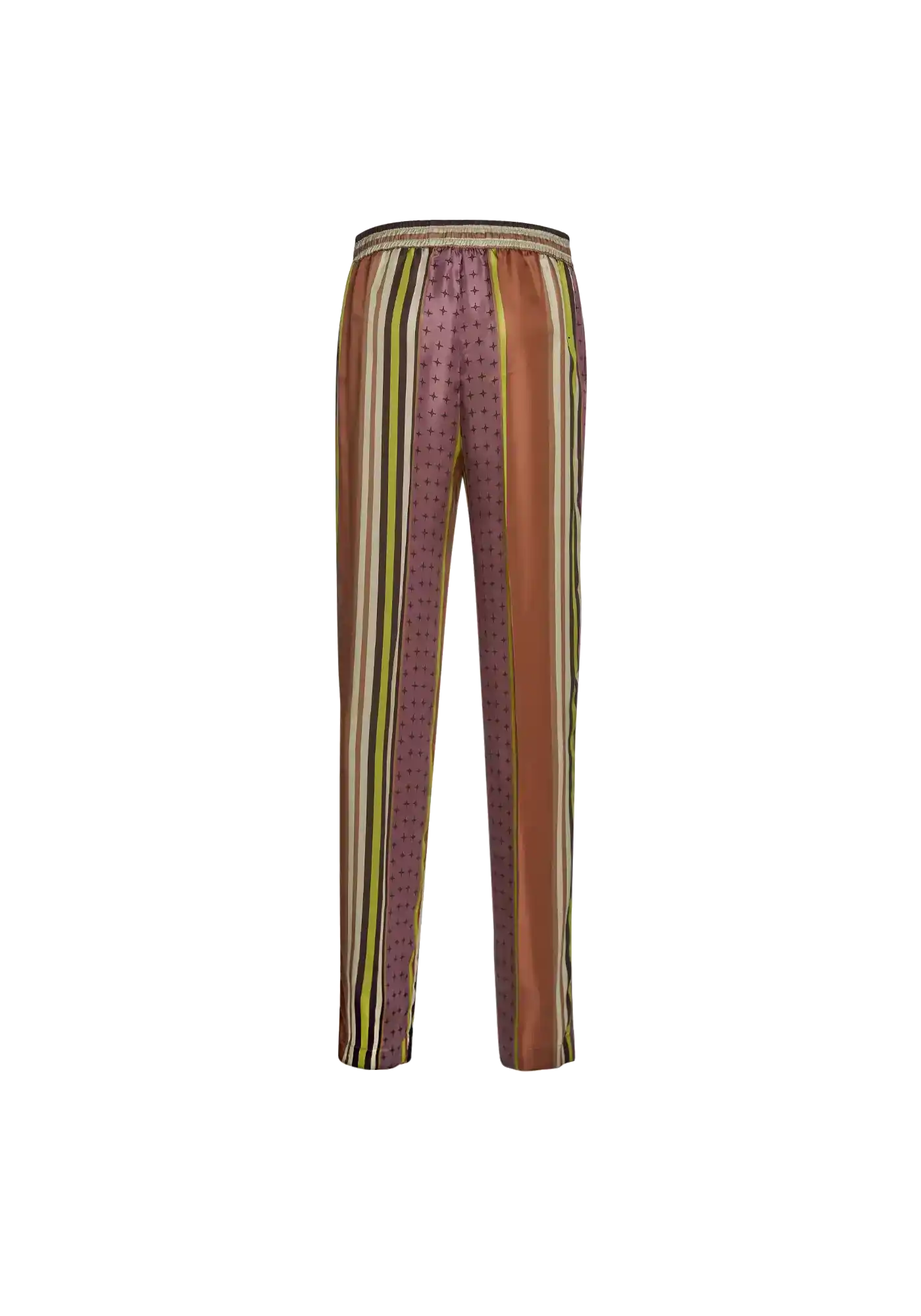 The Hunter trousers are crafted for both comfort and style. Made from luxurious silk, the fabric drapes elegantly, adding a touch of opulence to the bold, vibrant pattern. Perfect for making a statement, these trousers combine high-end sophistication with a daring design, ideal for adding a unique flair to any outfit.