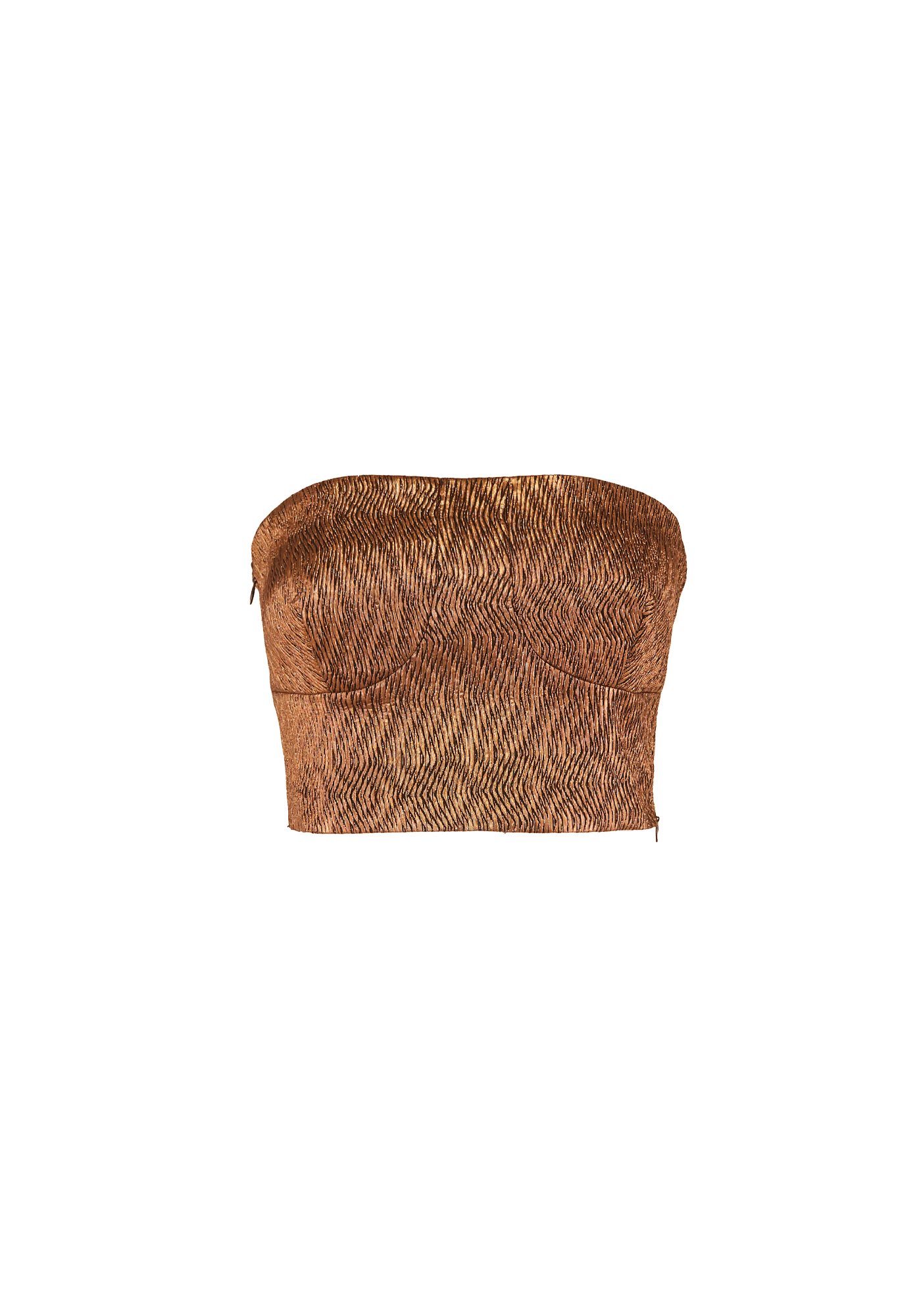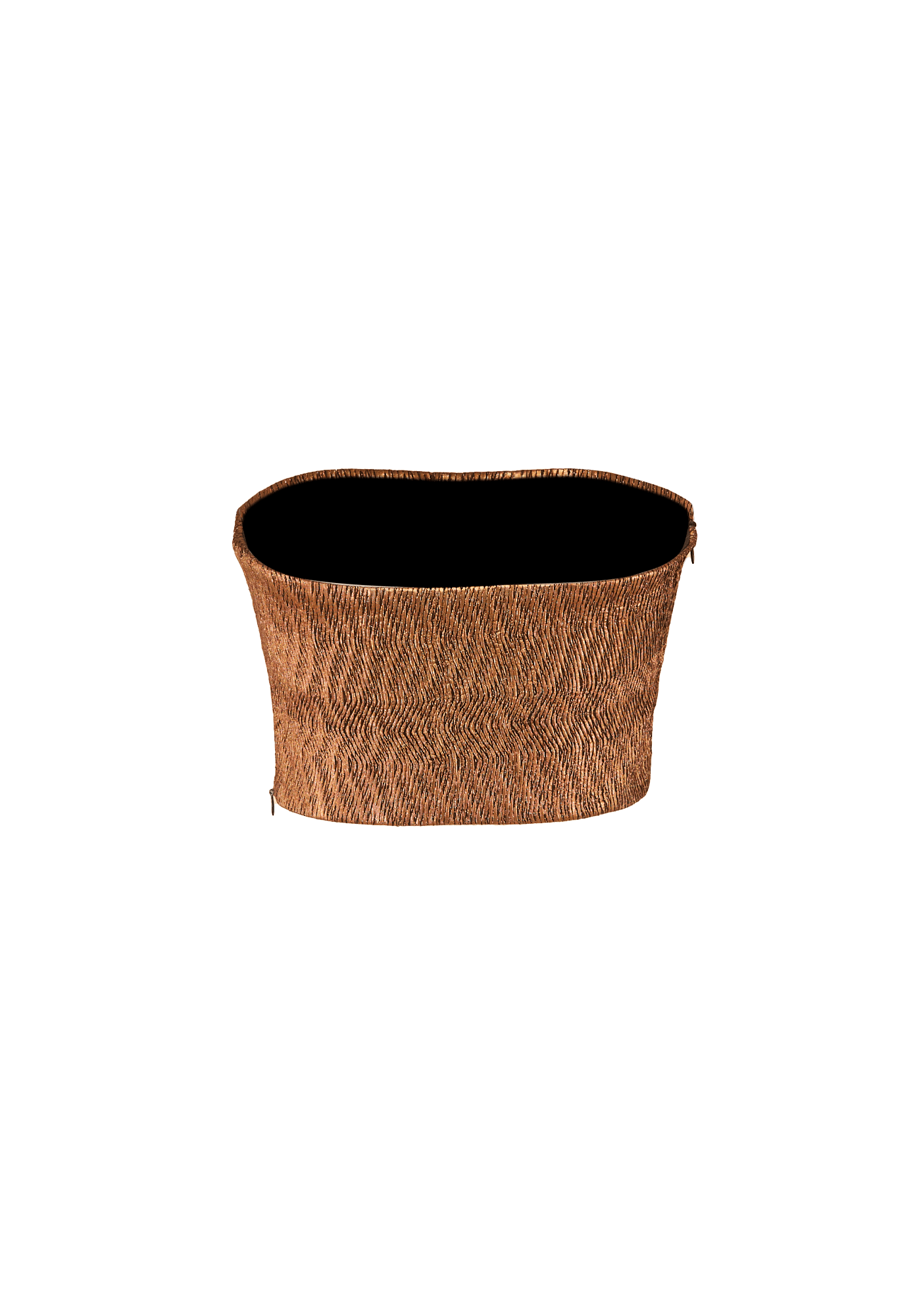 The iconic top by Collini Milano 1937 made of jersey outlines the natural curves of the body. Its corset-style silhouette leaves the shoulders uncovered, while the matching stitching gives elegance to an outfit with skirt or trousers.