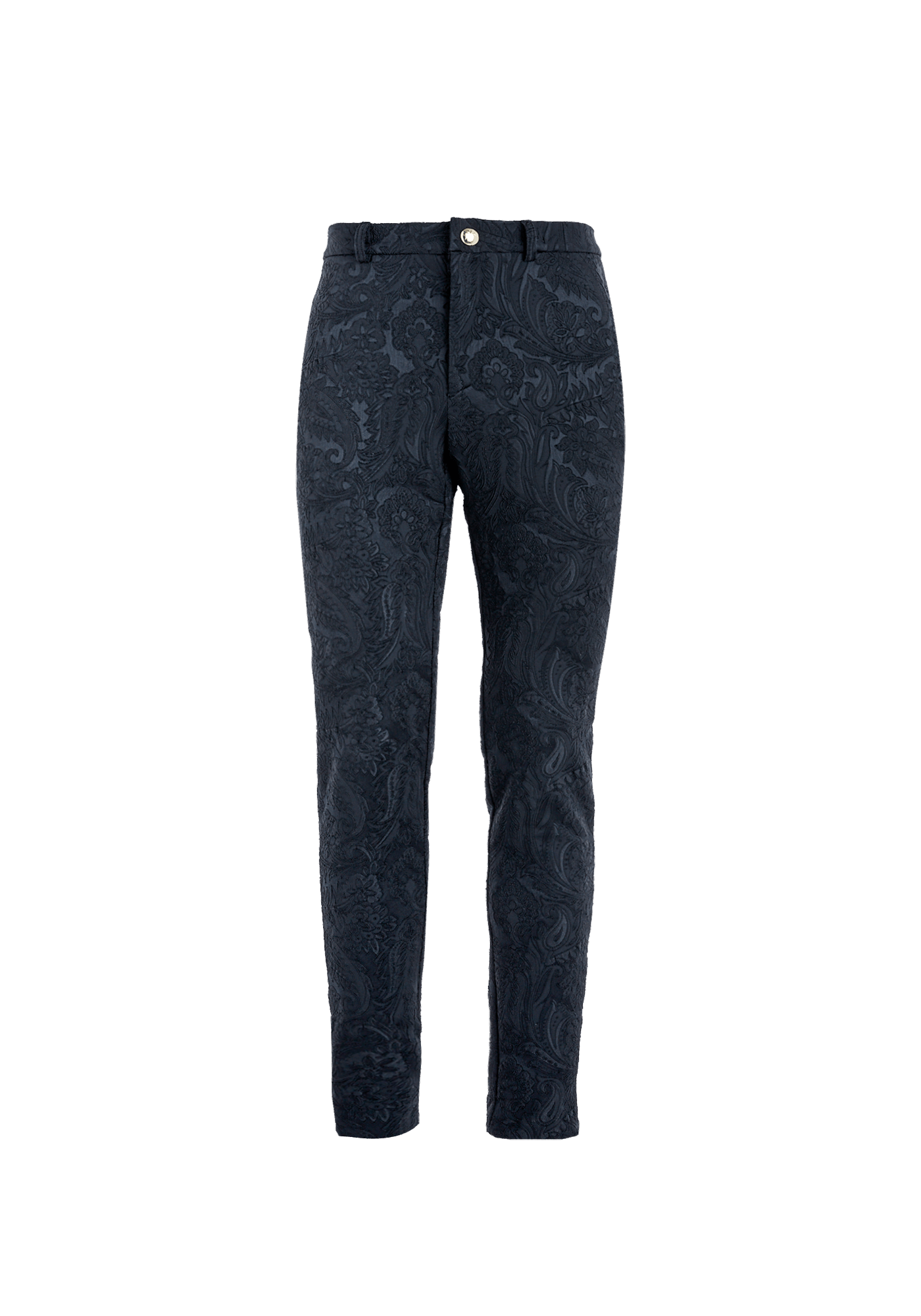 The eccentric Orion pants feature a shimmering coating following the silhouette’s lines, enhanced by a high waistline elevating a look. The tones and design turn the piece into an elegant choice shouting uniqueness and character.