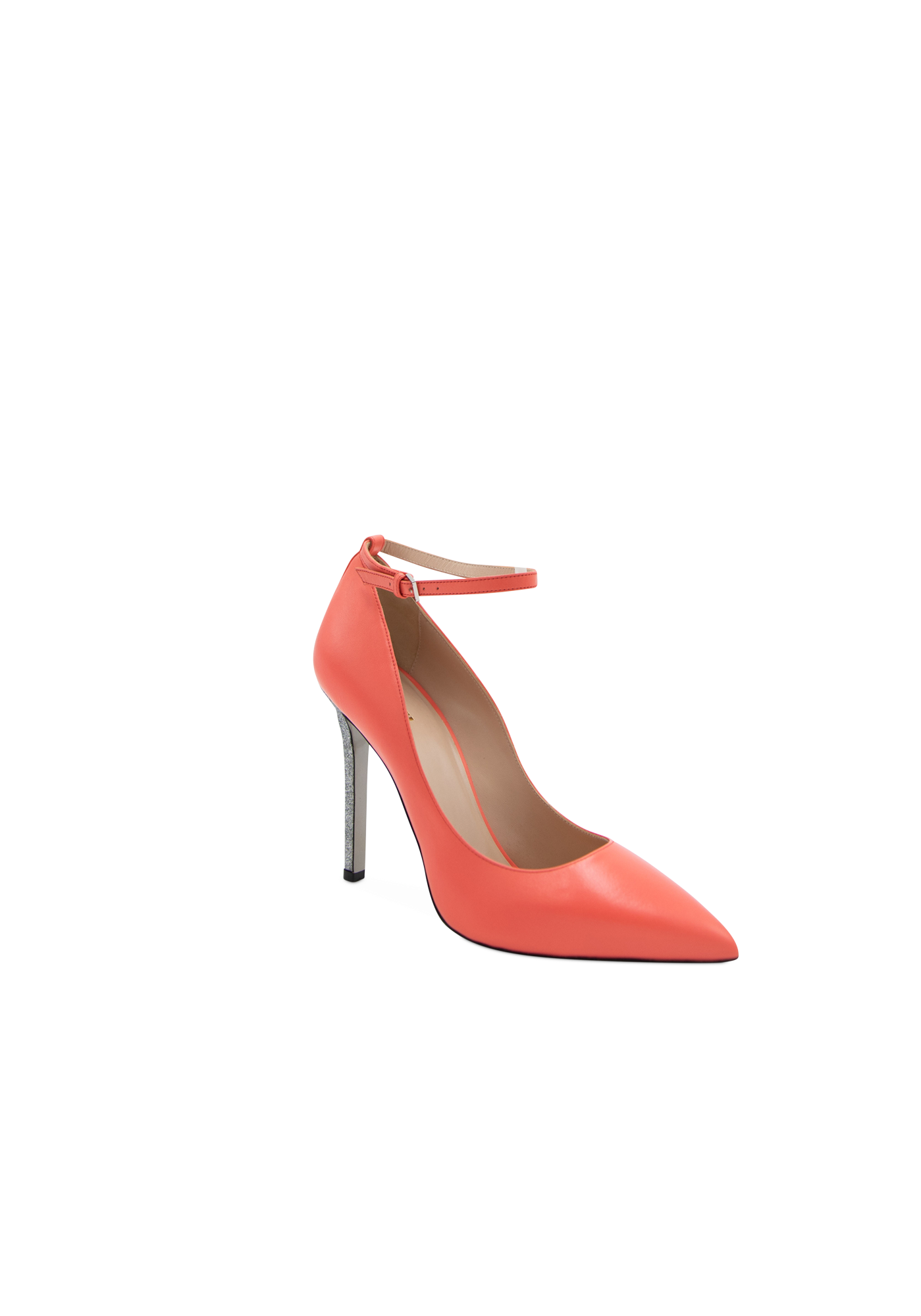 With a gentle and delicate ankle strap, the St Tropez high-heeled pump features a silver heel elevating a classical daywear look. The leather silhouette emphasizes the sexiness of the leg and gives a touch of glamour to your style.