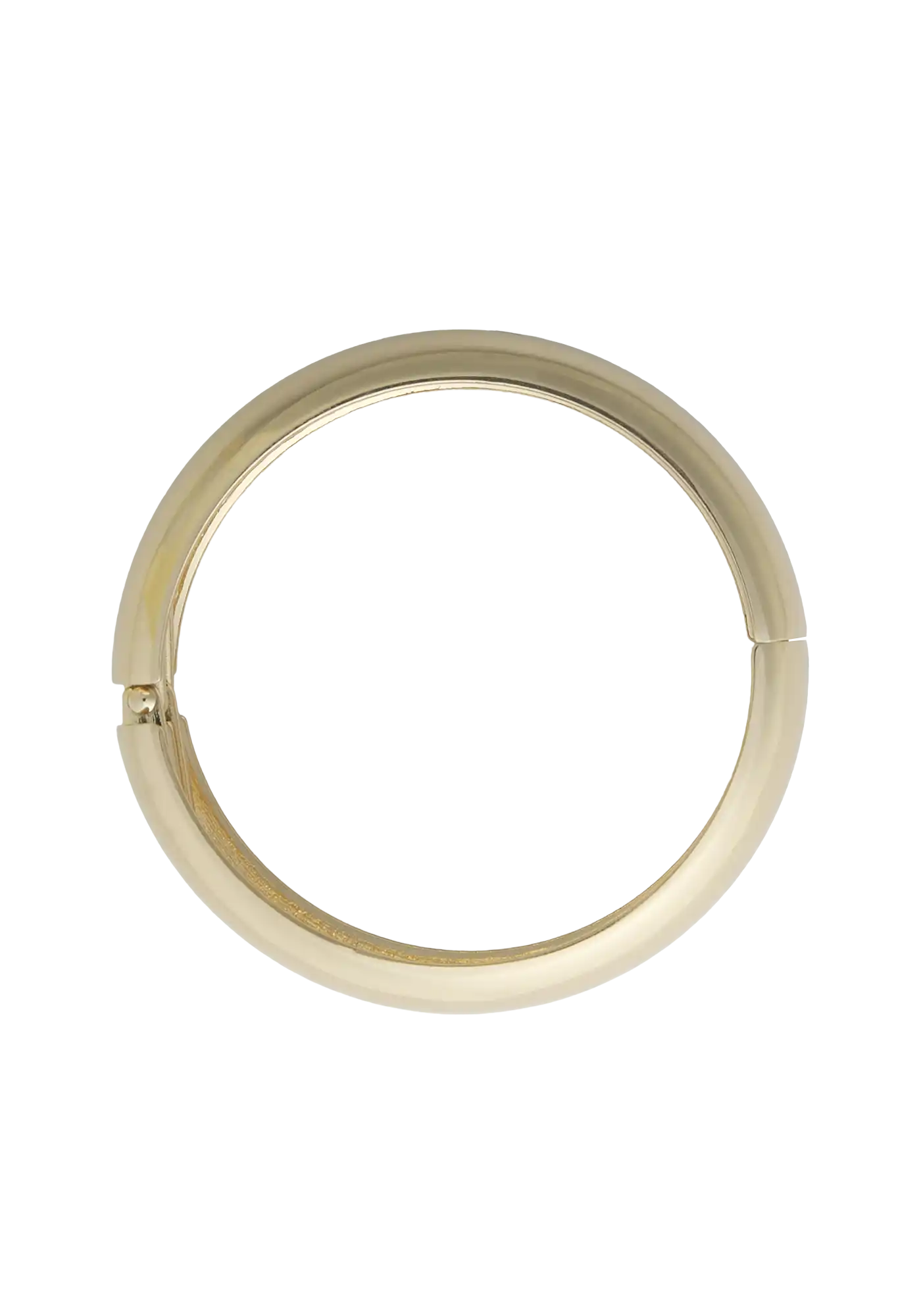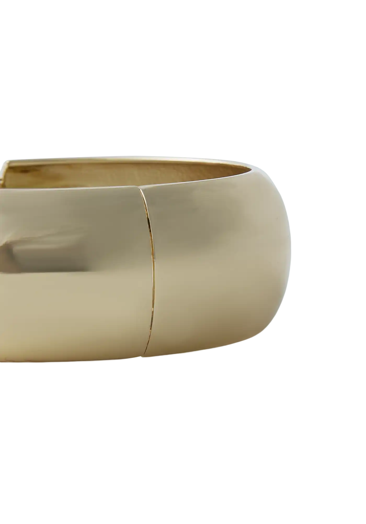 Sleek gold slip-on bracelet with a smooth, minimalist design. Featuring a secure snap closure for effortless wear and added durability. A timeless piece that combines style and functionality.